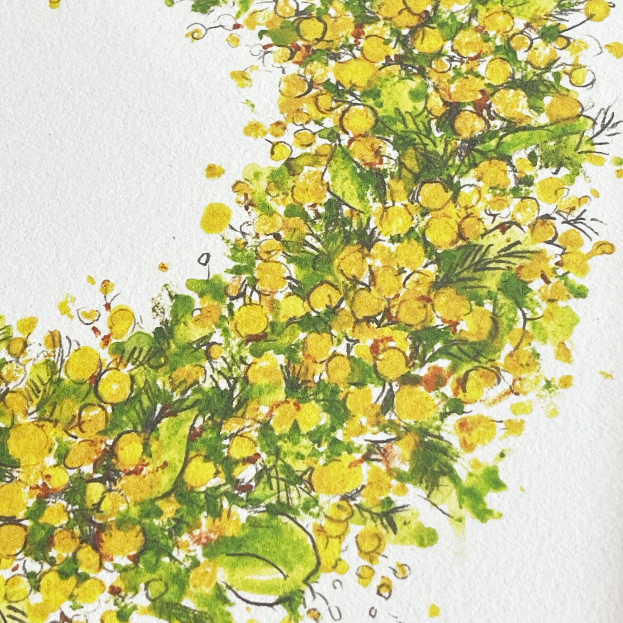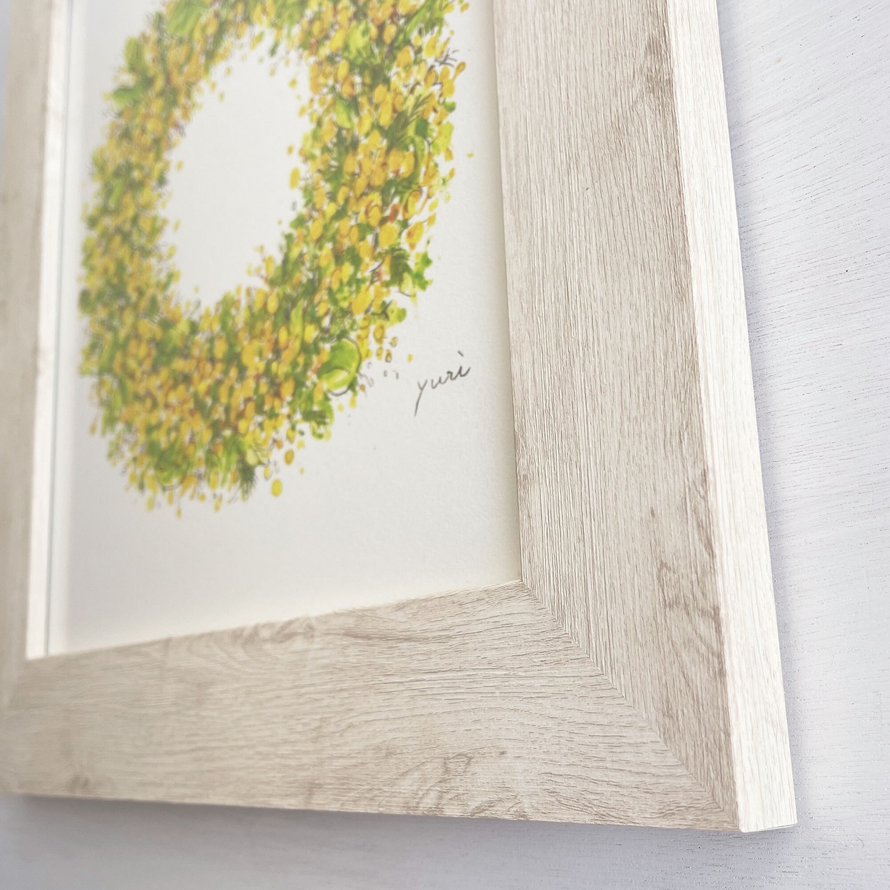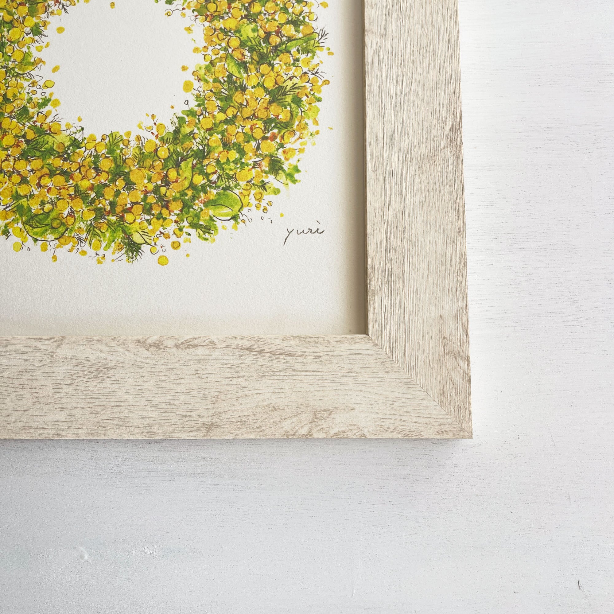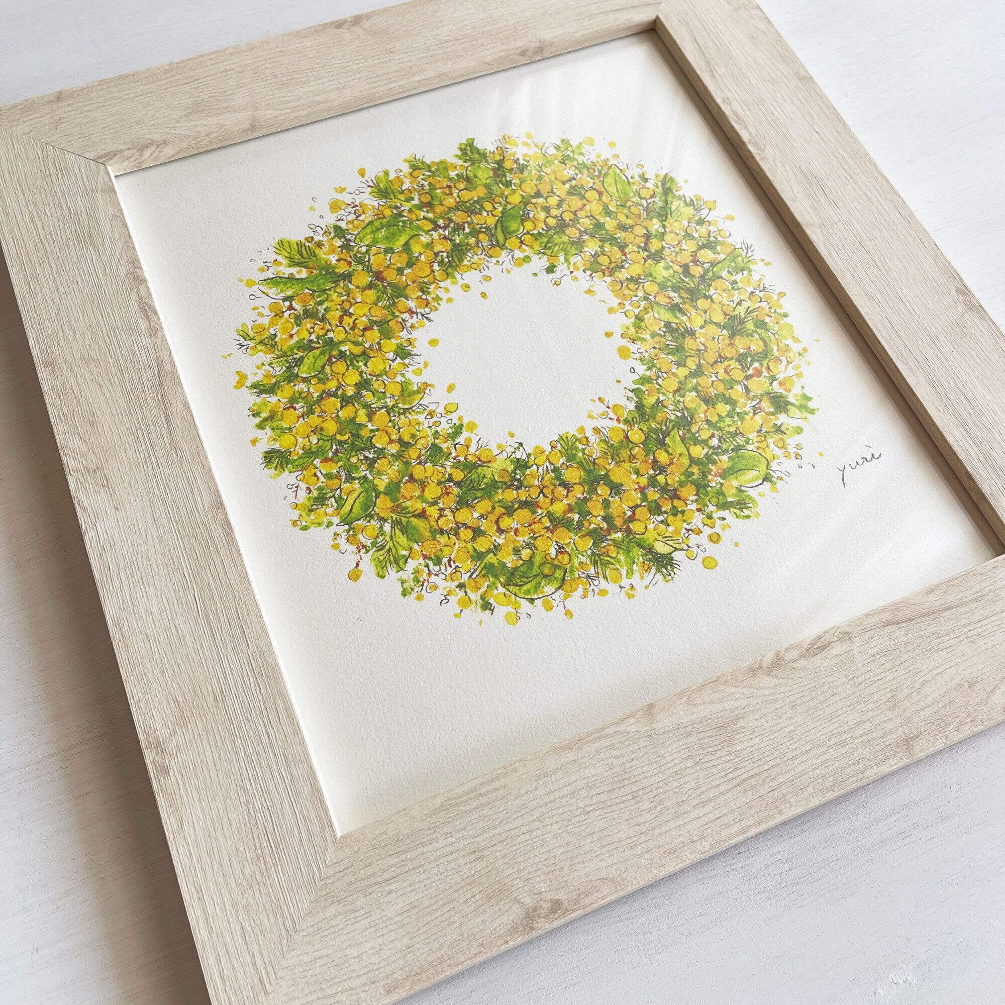 ミモザのリース 〈アートプリント・額装付き〉